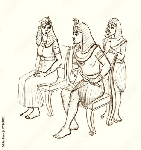 Obraz premium Pharaoh on the throne. Pencil drawing