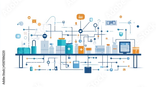 © Kebon, Obraz premium Pharmaceutical Production Process Diagram