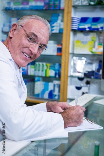 Obraz premium Pharmacist writing on clipboard