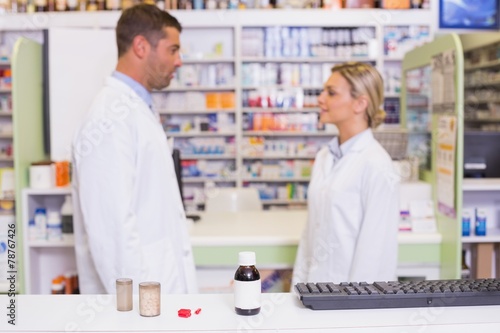 Obraz premium Pharmacists talking each other