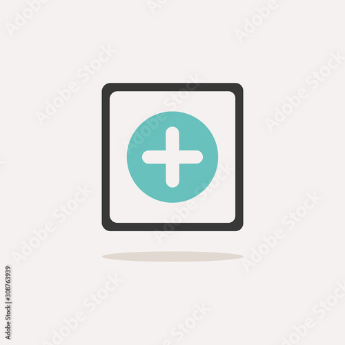 Obraz premium Pharmacy cross sign. Icon with shadow on a beige background. Medicine vector illustration