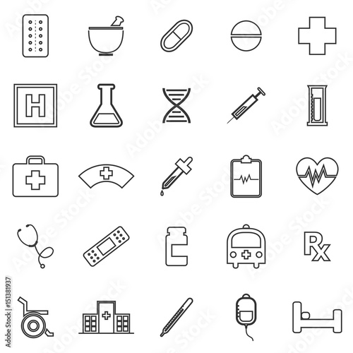 © punsayaporn, Fototapeta premium Pharmacy line icons on white background