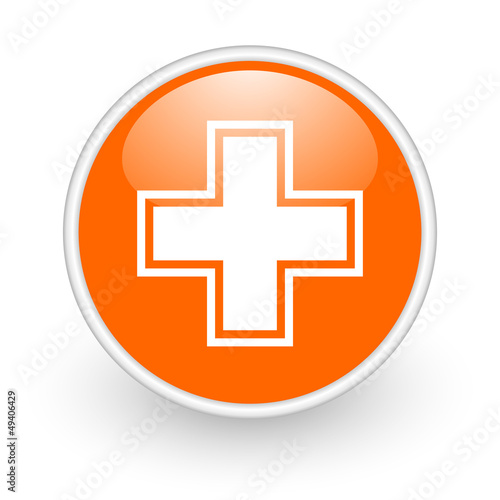 Obraz premium pharmacy orange circle glossy web icon on white background