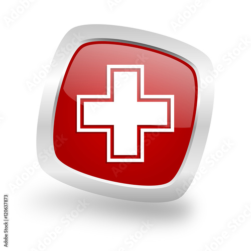 Obraz premium pharmacy square red glossy chrome silver metallic web icon