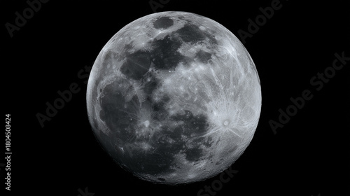 © wu, Obraz premium phase. A detailed closeup of the full moon, showcasing its textured surface against the dark expanse of space. STEM education sheets.