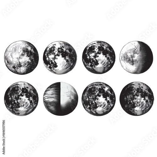 © Ticha, Obraz premium Phases of the moon displayed in a striking monochrome style.