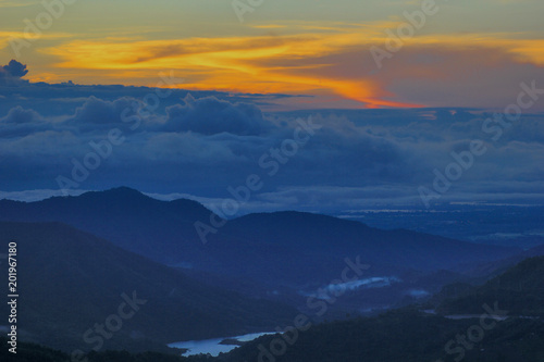 © bangprik, Fototapeta premium PHASORNKAEW Temple background of mountain natural/Beautiful Landscape form Pino Latte cafe at Khao Kho Phetchaboon Province ,travel toThailand