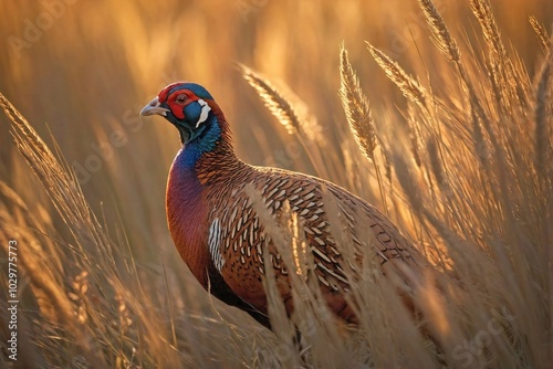 Fototapeta premium Pheasant in a Field of Tall Wild Grasses
