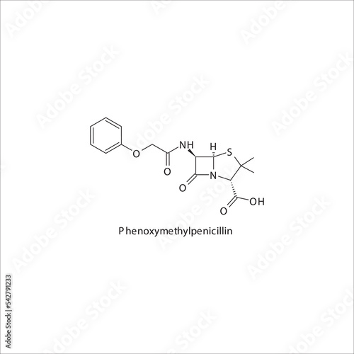 © Basstock, Naklejka premium Phenoxymethylpenicillin flat skeletal molecular structure Penicillin  drug used in bacterial infection treatment. Vector illustration.