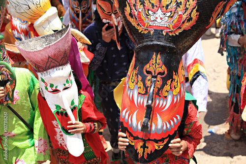 © kosin_sukhum, Naklejka premium Phi Ta Khon Festival in Loei, Thailand. Young people dress in spirit and wear a mask, sing and dance