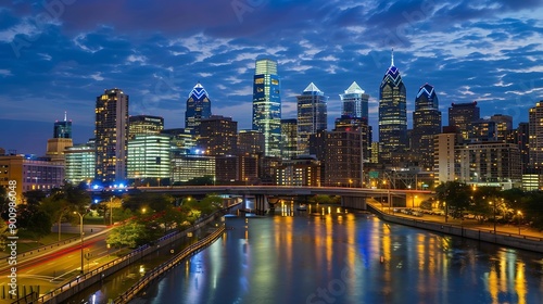 Obraz premium Philadelphia Pennsylvania USA downtown city skyline at dusk : Generative AI