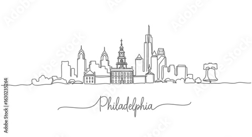 © godsfavoritearts, Naklejka premium Philadelphia Skyline Line Art Illustration with Cityscape, and USA.