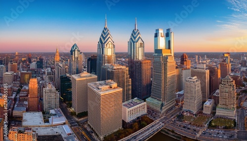 Obraz premium philadelphia skyline photography stunning cityscape images at golden hour aerial view panoramic cityscape high resolution photos