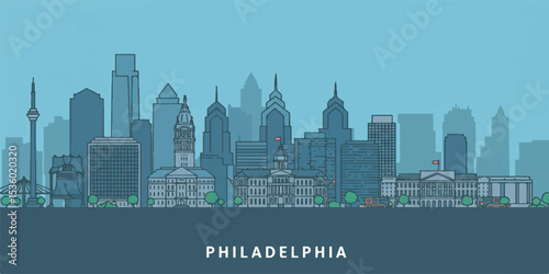 © Admint, Naklejka premium Philadelphia Skyline Vector in Flat Minimalist Style