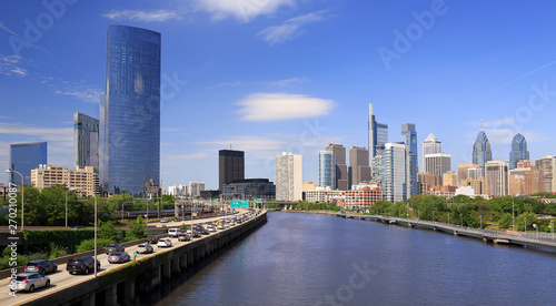 Fototapeta premium Philadelphia skyline with the Schuylkill River and highway on the foreground,...