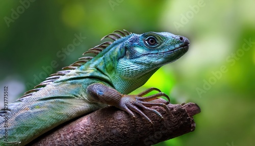 Obraz premium Philippine Sailfin Lizard Hydrosaurus pustulatus Basking in Tropical Sunlight, Vivid Greens and Gold Accents in a Tropical Paradise, Capturing the Allure of the Islands Exotic Fauna.