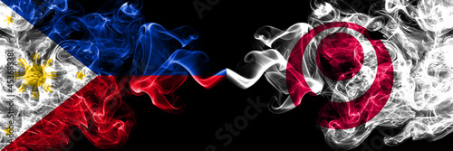© Vlad, Fototapeta premium Philippines, Filipino vs Japan, Japanese, Okinawa Prefecture smoke flags side by side.