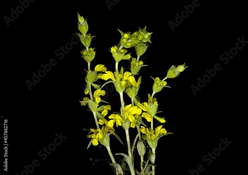 Obraz premium Phlomis lychnitis, Lychnite wild yellow flowers, common name hares ear