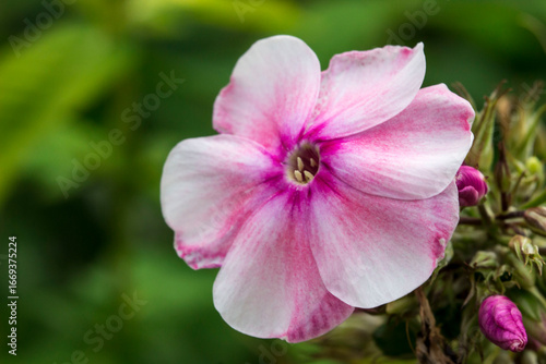 Obraz premium phlox pink. colorful macro photography of a flower. blurred background with highlights and bokeh. the beauty of nature. wildlife.