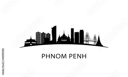 © greens87, Fototapeta premium Phnom penh city skyline. Black cityscape isolated on white background. Vector banner.