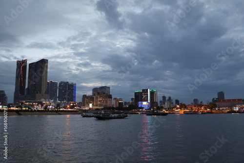 Naklejka premium phnom penh evening time view from the river pretty lights cambodia