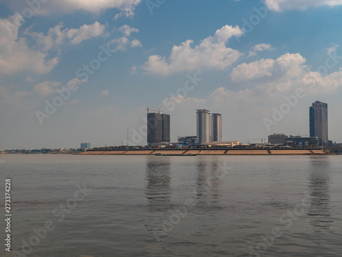 Naklejka premium Phnom Penh skyline from Tourist Boar, Cambodia