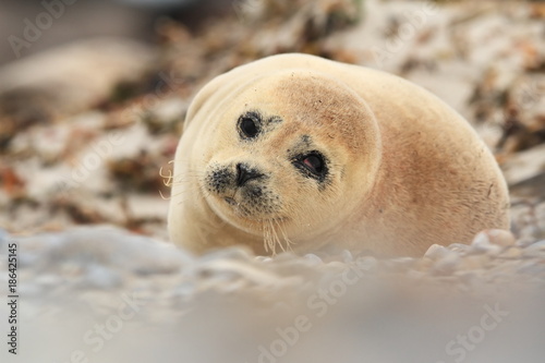 © Michal, Obraz premium Phocidae. Beautiful wild nature of the North Sea. Germany. Seal on the beach. Nature of Europe.