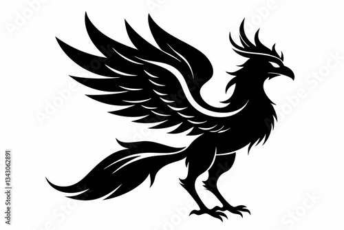 © Pinak, Obraz premium phoenix bird line art silhouette vector illustration