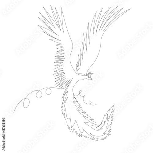 Obraz premium Phoenix bird one line drawing, outline, isolated, vector