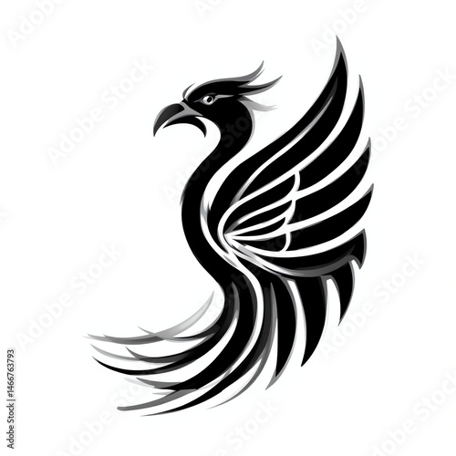 © Feri, Fototapeta premium Phoenix Illustration Design in Black and White