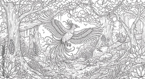 © Berta, Naklejka premium Phoenix in the Enchanted Forest.