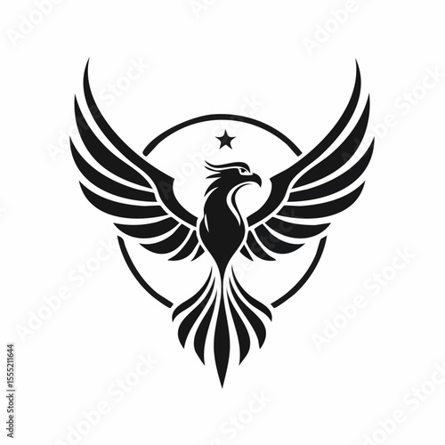 Fototapeta premium Phoenix logo vector. Hand drawn phoenix silhouette logo vector on white background.