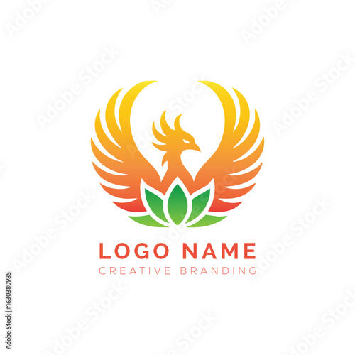 © Rasel, Obraz premium Phoenix Logo with Lotus and Gradient Wings