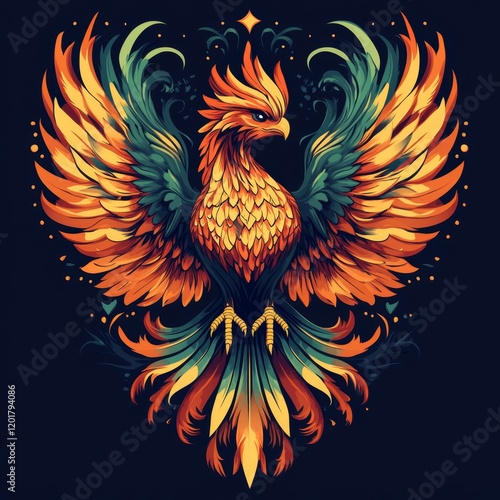 Fototapeta premium Phoenix Rising from the Flames with Vibrant Colors