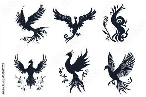 Obraz premium Phoenix Silhouette. Tribal Design of Phoenix Bird with Wings Spread