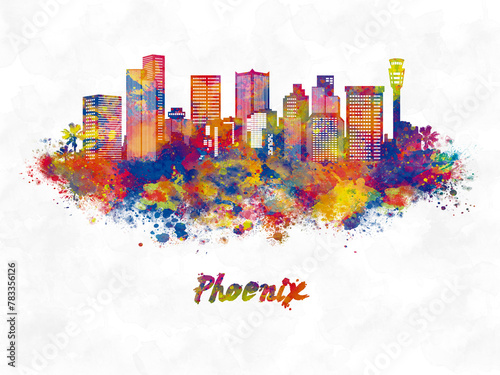 © Artvi, Fototapeta premium Phoenix skyline in watercolor