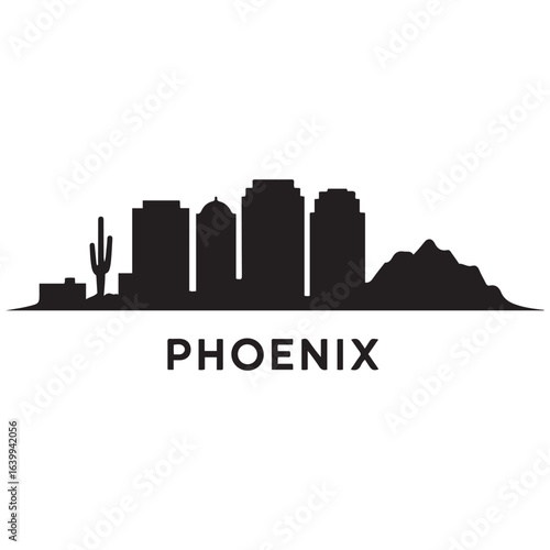 © Nargis, Fototapeta premium Phoenix skyline silhouette. Landscape Phoenix, Arizona. Vector illustration. Vector black silhouette. with white background.