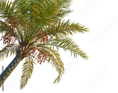 © DH Tree Stock, Fototapeta premium Phoenix sylvestris tree, corner view, cutout, transparent background, isolate, Palm tree with coconuts against the sky, beautiful tropical tree with fruits