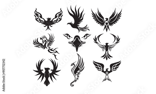 © tuhinarts, Obraz premium Phoenix Vector bundle, Clipart, Silhouette, Vector, icons, illustration, design.