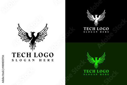 Obraz premium phoenix with circuit web wings and tail illustration, icon, vector logo for...