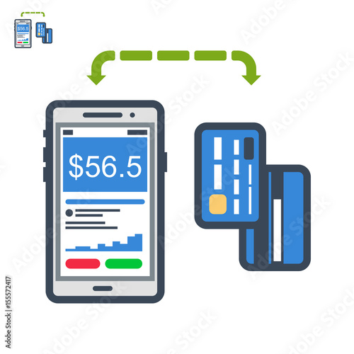 © dolzhanskiy, Obraz premium Phone and cards flat vector icon