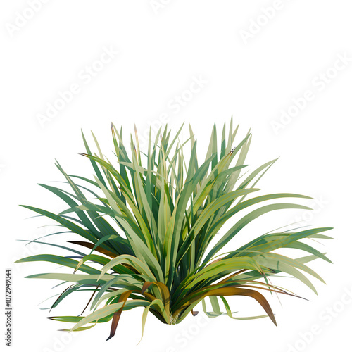 Obraz premium Phormium tenax tree, front view, cutout, transparent background, isolate, architecture visualization, Vibrant Green Grass Tuft - Natural Vegetation Element for Design Projects