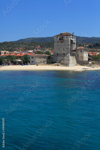 © Rostislav Ageev, Naklejka premium Phospfori tower in Ouranopolis, Athos Peninsula, Mount Athos