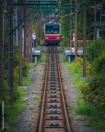© 樹希 菅原, Fototapeta premium まっすぐな線路を走るローカルな電車