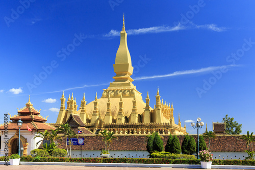 Naklejka premium ラオスの首都ビエンチャンの仏教寺院タートルアン