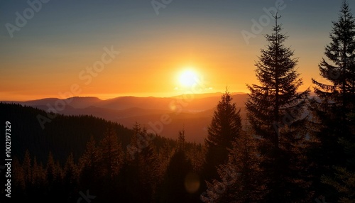 © Shoithi, Obraz premium 【風景素材】山に沈む夕日