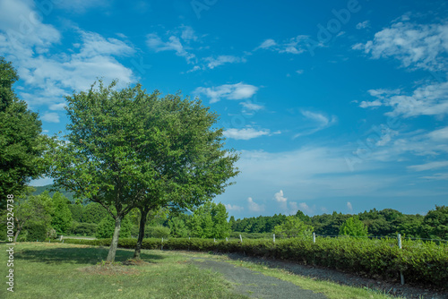 Obraz premium 日本の滋賀県にある新緑の木と青空