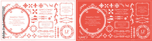 © yosiyosi, Fototapeta premium クリスマスモチーフのフレームデザインセット。ゴージャスでエレガントなデザイン素材