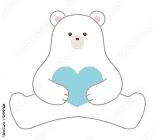 © chie, Naklejka premium かわいい白熊のベクターイラスト。ハート、シロクマ、ホッキョクグマ