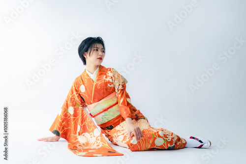 Fototapeta premium 着物を着た女性のポートレート 成人式 着付け